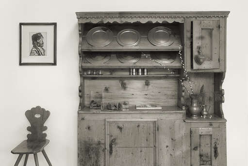 Naturstein, Lärchenholz, Glas, Design Klassiker und Zeugen vergangener Wohnkultur verbinden sich zu einem harmonischen Ganzen.